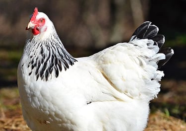 Et ve yumurta üretimi için mükemmel bir ırk olan Light Sussex tavuklarımız, güçlü bağışıklık sistemi ve sakin yapısıyla bilinir. Hem bahçede dolaşma hem de ticari üretime uygundur.
