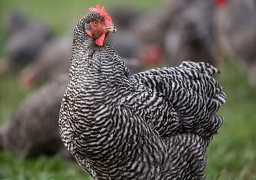 Dayanıklılığı, yüksek yumurta verimi ve sakin yapısıyla bilinen Plymouth Rock tavuklarımız, doğal beslenme ile yetiştirilmiş olup organik yumurta üretimi için idealdir.